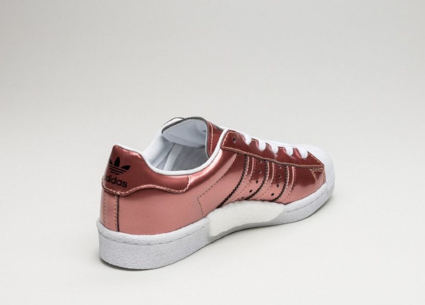 In this modern version, the adidas Superstar BB2270 comes with the energy-returning boost (TM) midsole. A shiny metallic-look upper gives the women's sneaker a premium update.