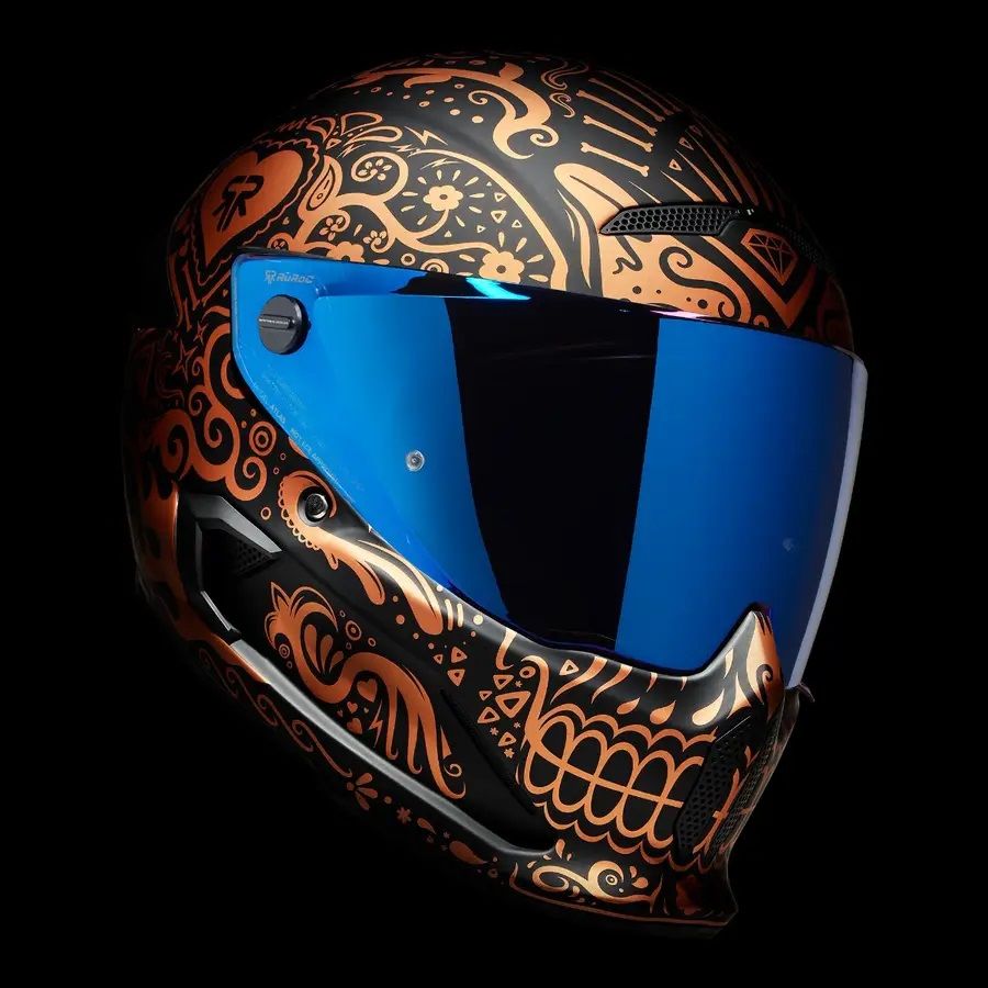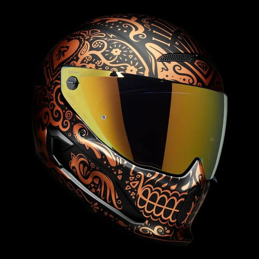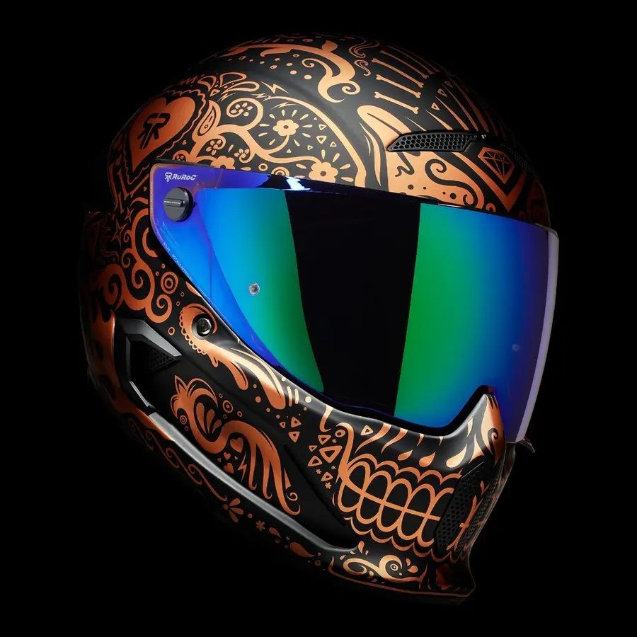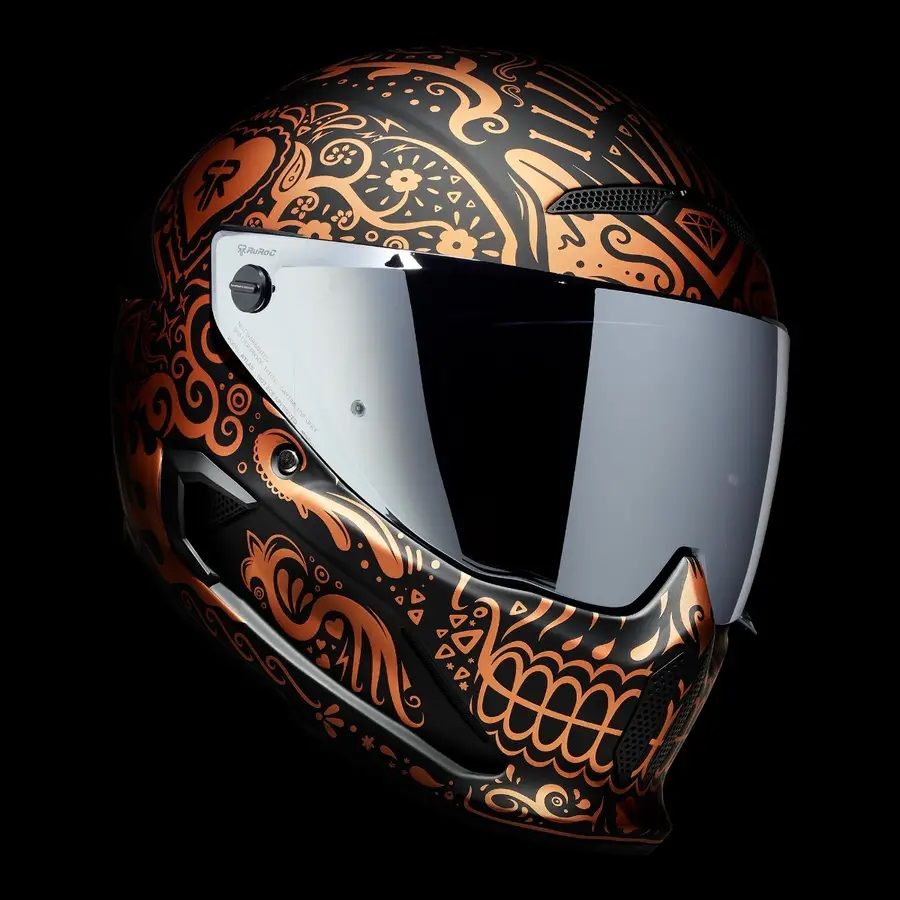 Emblematicul si complexul model Cinco de Madness este inzestrat cu un proaspat design intr-o nuanta noua, eleganta, de cupru. Este timpul ca noua casca full face de protectie pentru motocicleta ATLAS 4.0 El Cobre sa invie din morti si sa isi arate gloria. Fiind inspirata din traditionala arta cu cranii “Dia de los Muertos”, El Cobre este un adevarat simbol de traditie si stil.