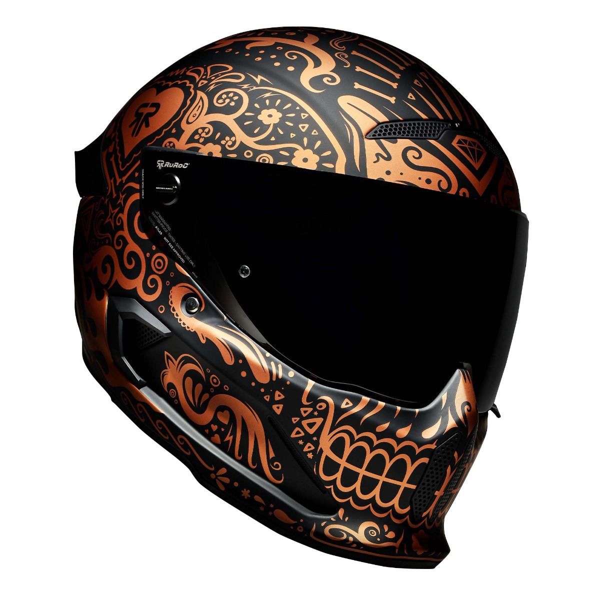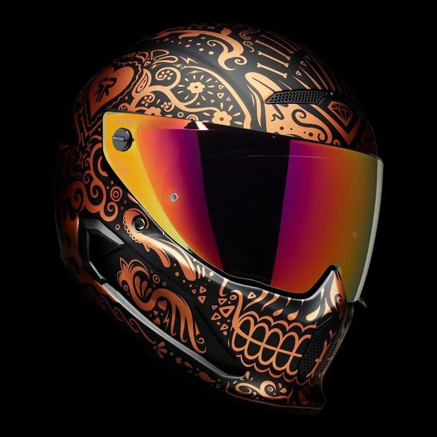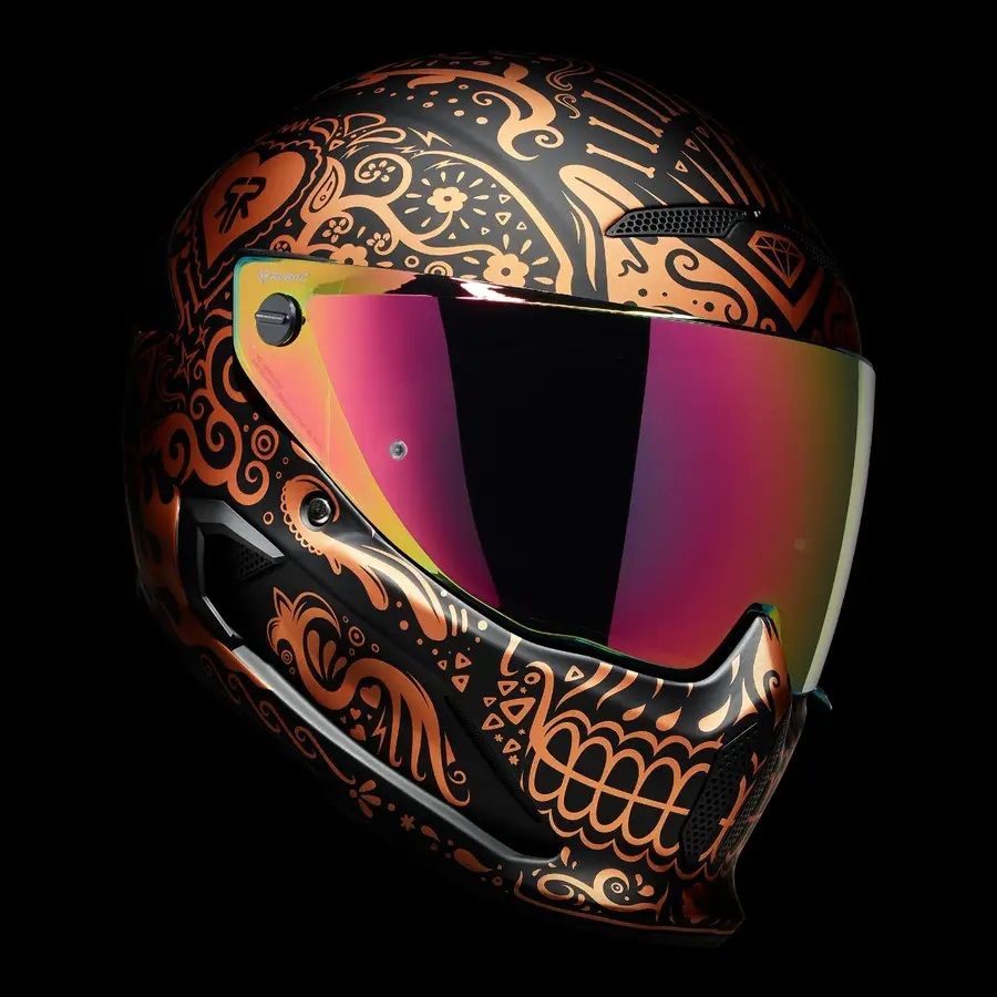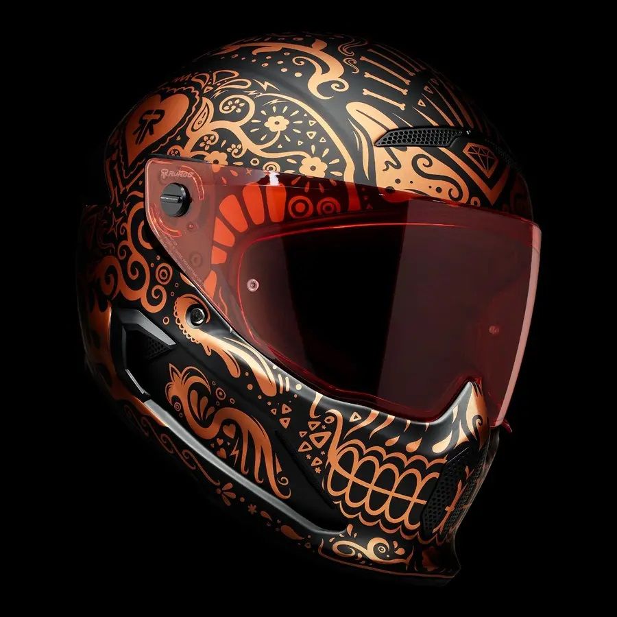 Emblematicul si complexul model Cinco de Madness este inzestrat cu un proaspat design intr-o nuanta noua, eleganta, de cupru. Este timpul ca noua casca full face de protectie pentru motocicleta ATLAS 4.0 El Cobre sa invie din morti si sa isi arate gloria. Fiind inspirata din traditionala arta cu cranii “Dia de los Muertos”, El Cobre este un adevarat simbol de traditie si stil.