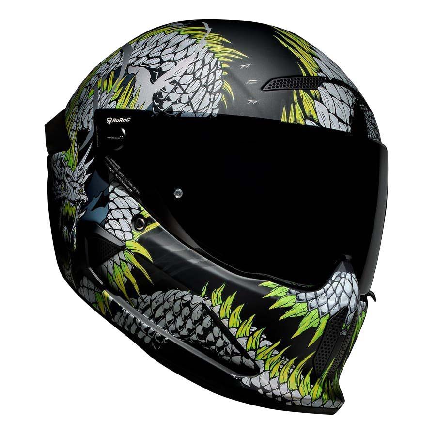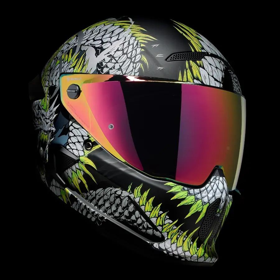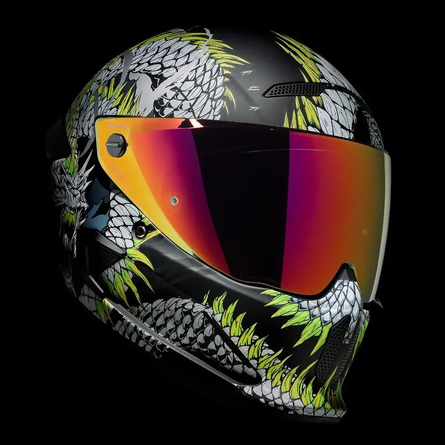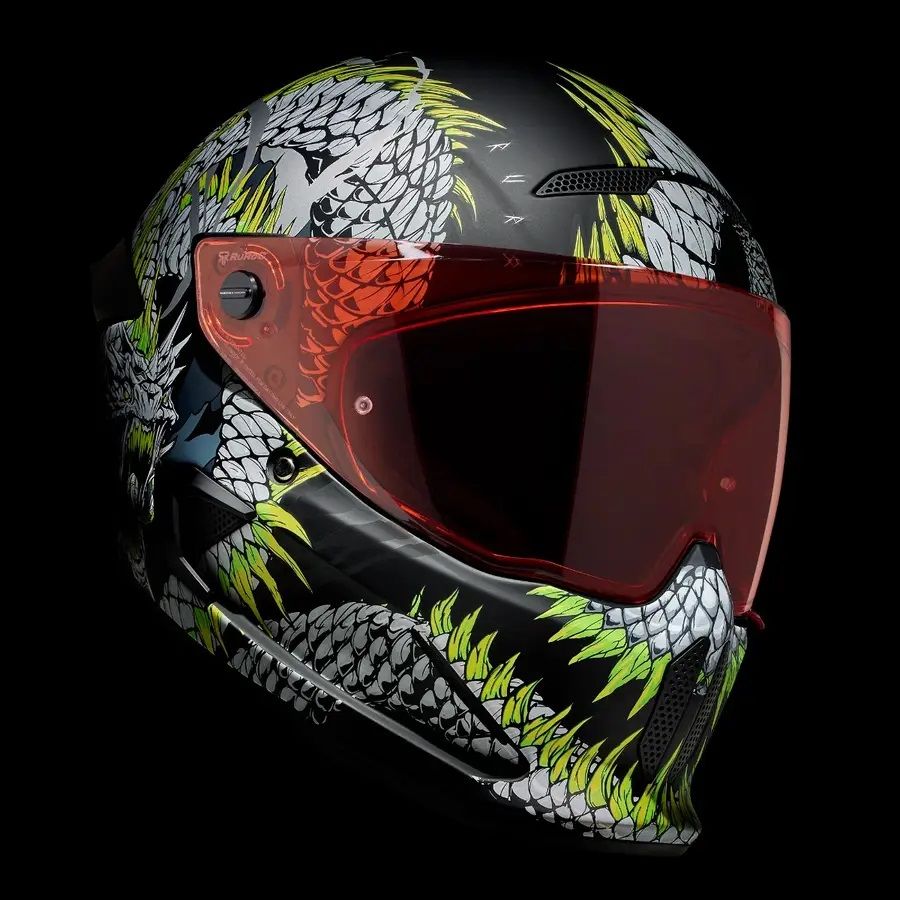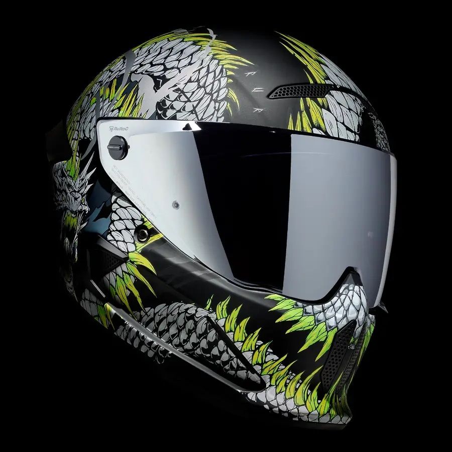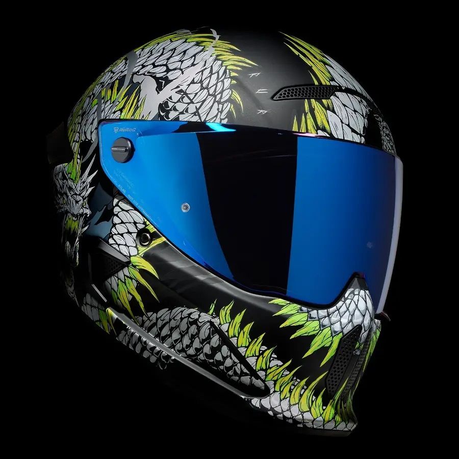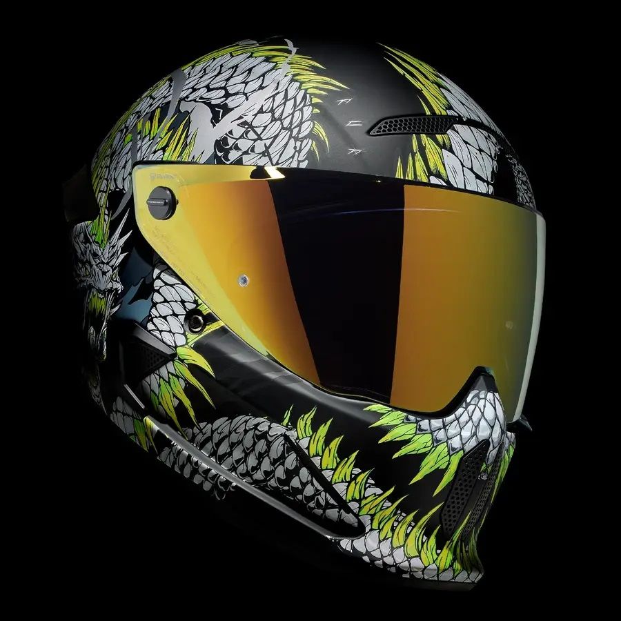 Atunci cand legatura eterna a lui Jormungandr este rupta, cand marea este cuprinsa de nelinisti fulgeratoare si cand cerurile sunt pline de otrava, apocalipsa se va dezlantui. Casca full face pentru motocicleta ATLAS 4.0 Serpent il prezinta pe veninosul Jormungandr in toata gloria lui demonica. Infasurand grafical din fata in spate, acest design brutal cu certitudine ii va aduce lumea la picioare. Cu detaliile impresionante si cu monstruosul cap al lui Serpent, casca full face pentru motocicleta ATLAS 4.0 prezinta figura lui Jormungandr cum se incolaceste in jurul castii aratandu-si sira spinarii evidentiata prin nuante de verde neon care urmeaza cursul corpului sau. ATLAS 4.0 Serpent nu este o casca adecvata pentru un rider timid, incorporeaza mitologie si detalii complexe ilustrand un design feroce care este pregatit sa cucereasca strazile.