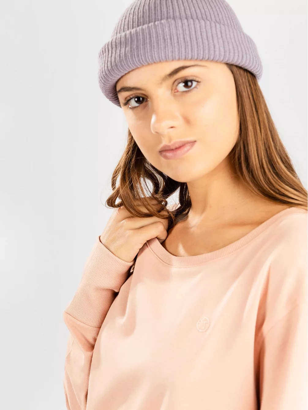 - Wide ribbed cuffs and hem