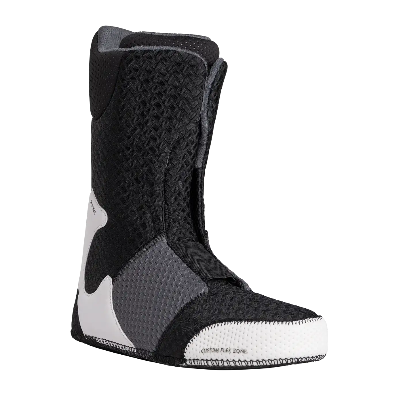 - 3D Molded Toebox elimină cusăturile pentru a-ți menține picioarele uscate, iar designul său aerodinamic facilitează intrarea și ieșirea mai rapidă din legături.