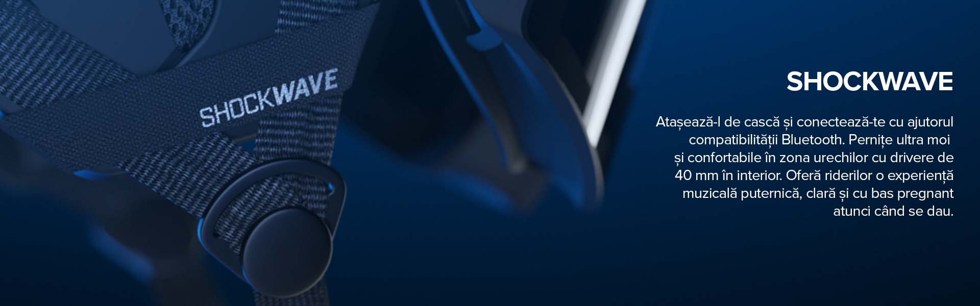 Sistemul audio Shockwave™ ce se conecteaza prin bluetooth si care se integreaza in casca este disponibil pentru a fi achizitionat separat.