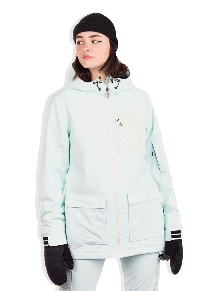 The Aries 10K Snowboard Jacket by Aperture is a stylish winter jacket fused with function and weather resistance for snowboarding. The slightly fitted waist offers room for a layer or two underneath while maintaining a streetwear-inspired silhouette. This jacket has a water column of 10,000 mm, an adjustable hood and a snow guard so that snow has no chance to penetrate.