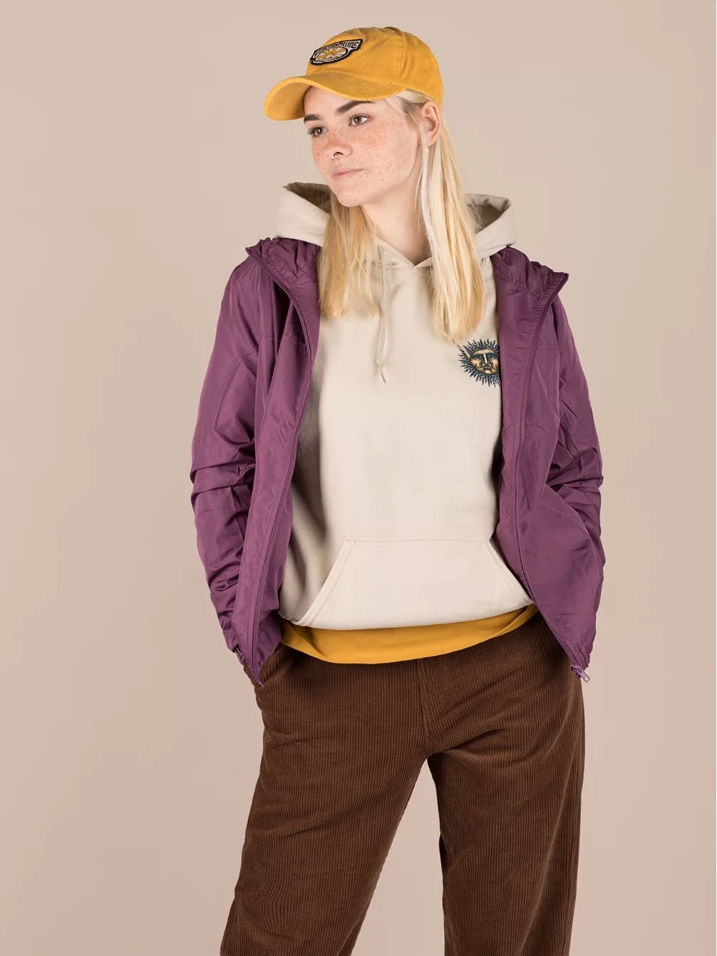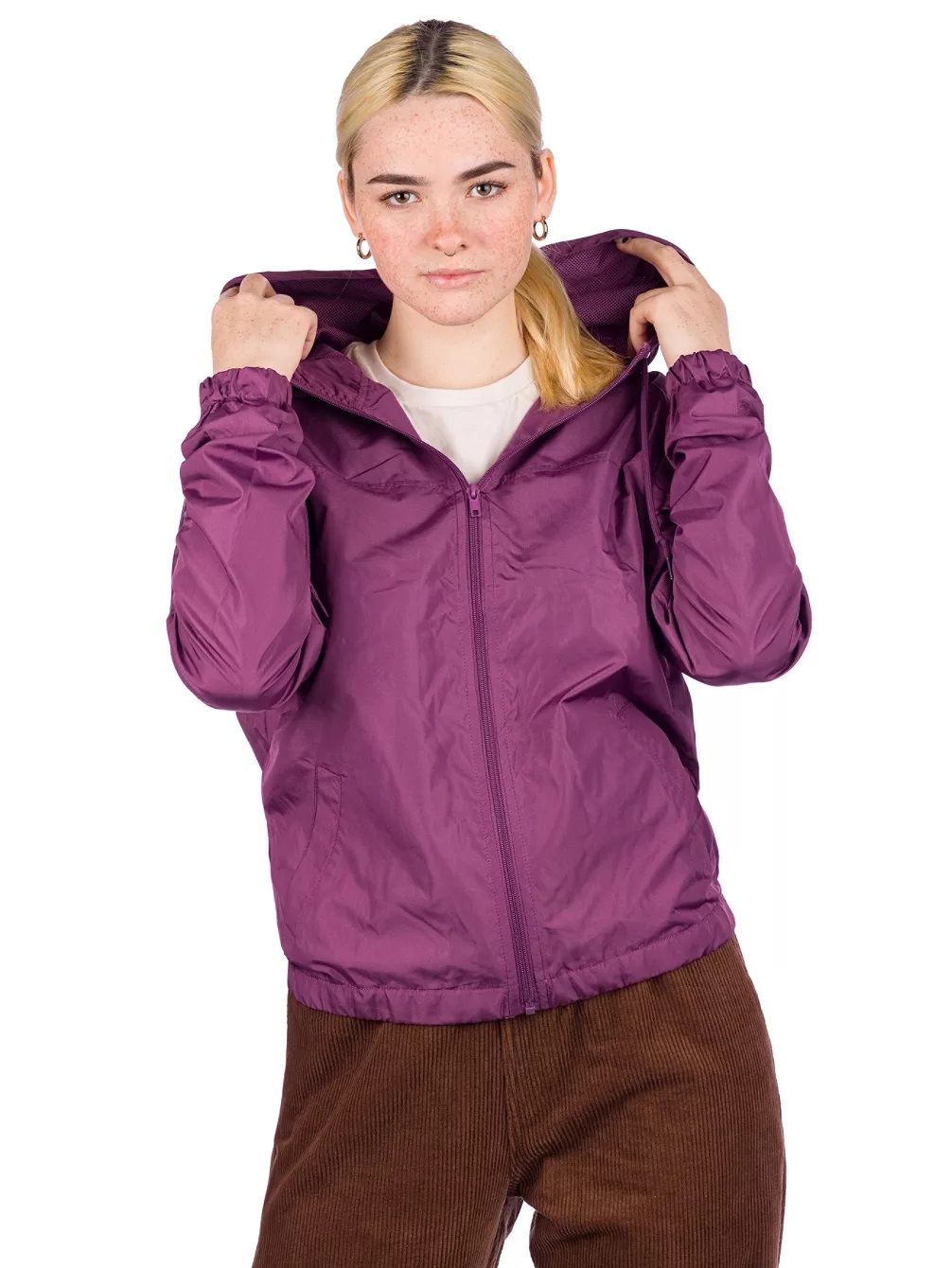 Keep rain from putting a damper on your day with the Fern purple windbreaker jacket from Zine! This casual windbreaker features an adjustable hood, as well as an elastic hem and sleeve cuffs so you can keep moisture out with ease. Slash hand pockets at the waist can store your stuff or your hands, and the lightweight construction lets you wear the jacket as a light layer when it's warmer out, or layer up underneath for added warmth when you're on the go.