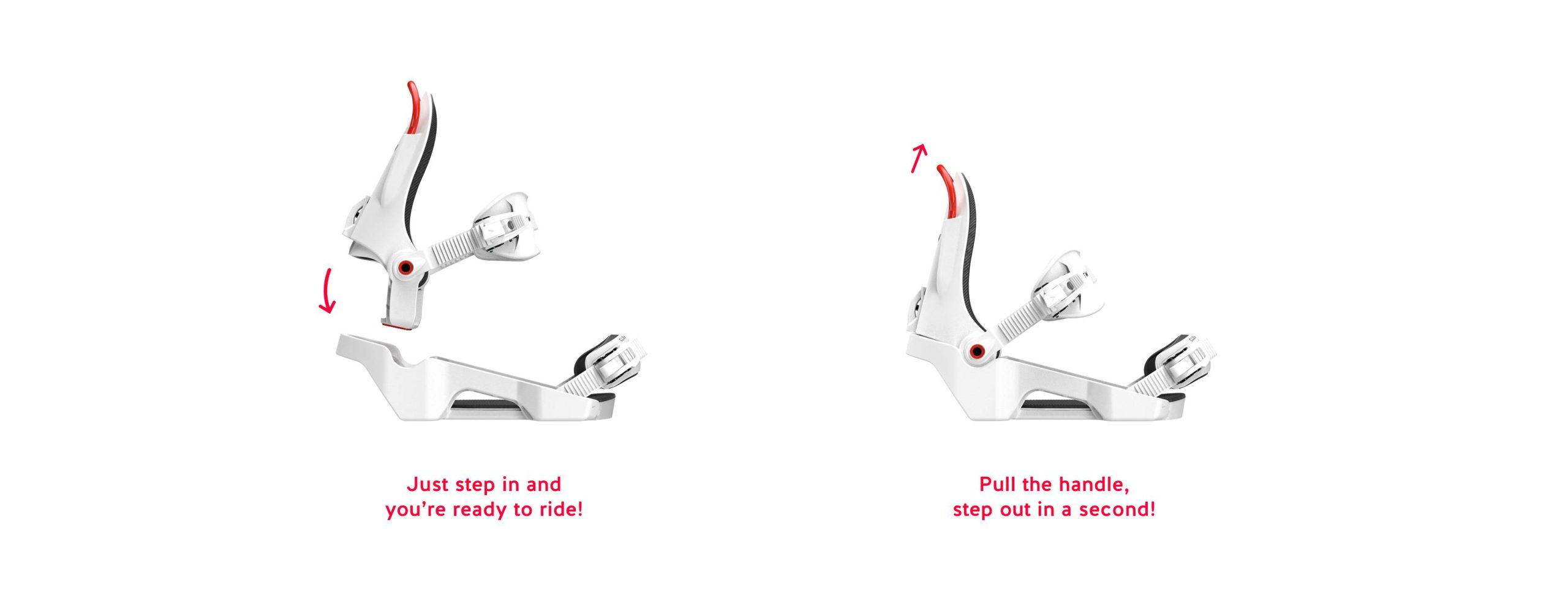 A doua componentă este fixată pe placa de snowboard. Datorită meticulosului proces de inginerie ce stă la baza acestui produs, sistemul step-in este realizat astfel încât să funcționeze eficient chiar și atunci când este acoperit de zăpadă.