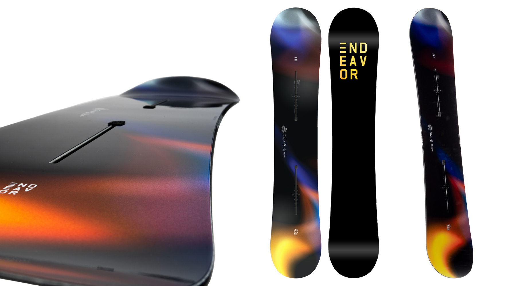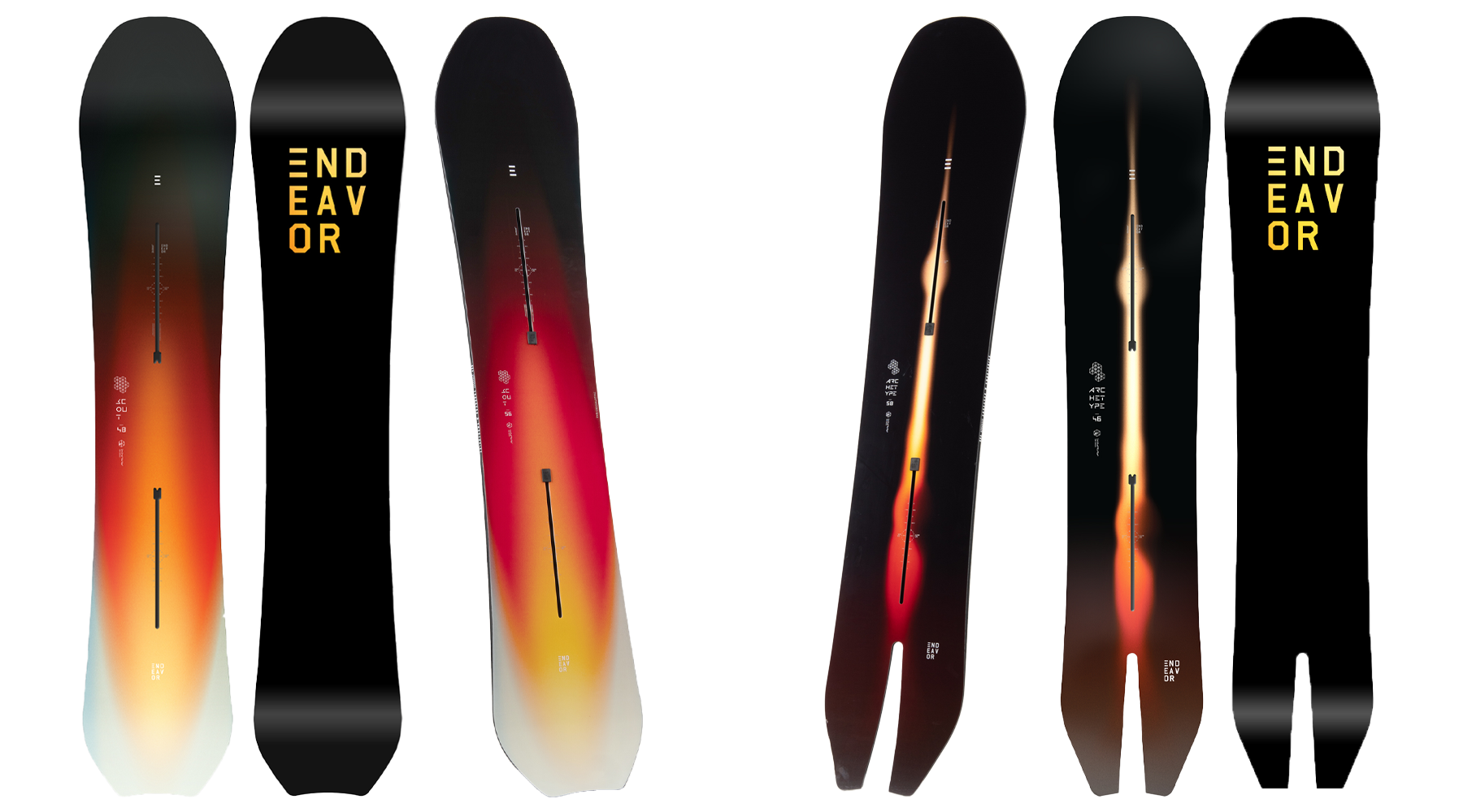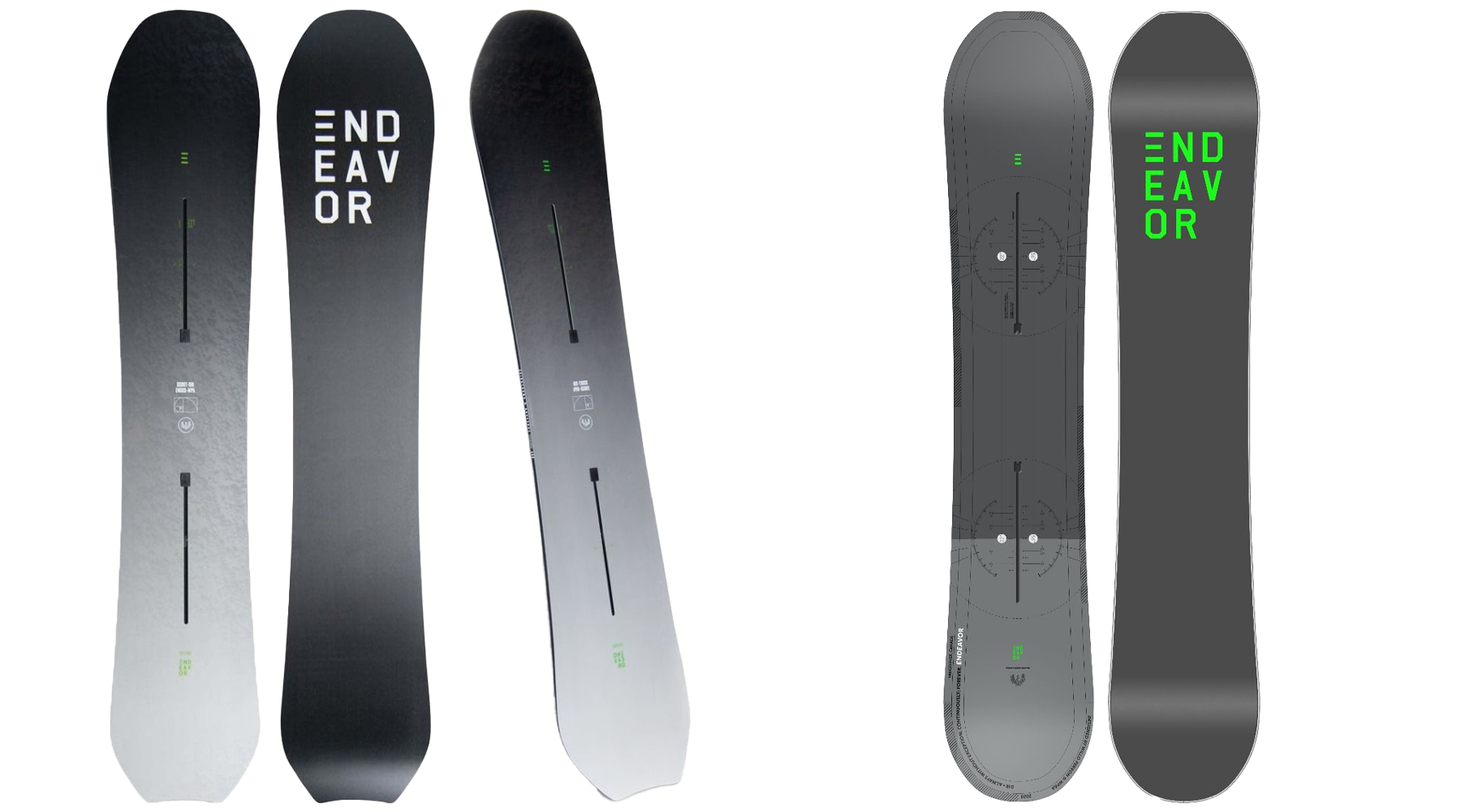 Din punctul de vedere al formei placilor de snowboard, brandul Endeavor s-a axat pe patru modele pentru produsele sale: Directional, Directional Twin, True Twin si Wide Boards. Placile Endeavor Directional (directionale) au un nose mai ridicat si un tail mai aplatizat, plus o forma si un flex directionale. Cu un nose mai lung decat tail-ul, aceste placi ofera o performanta incomparabila in powder si stabilitate in toate conditiile.