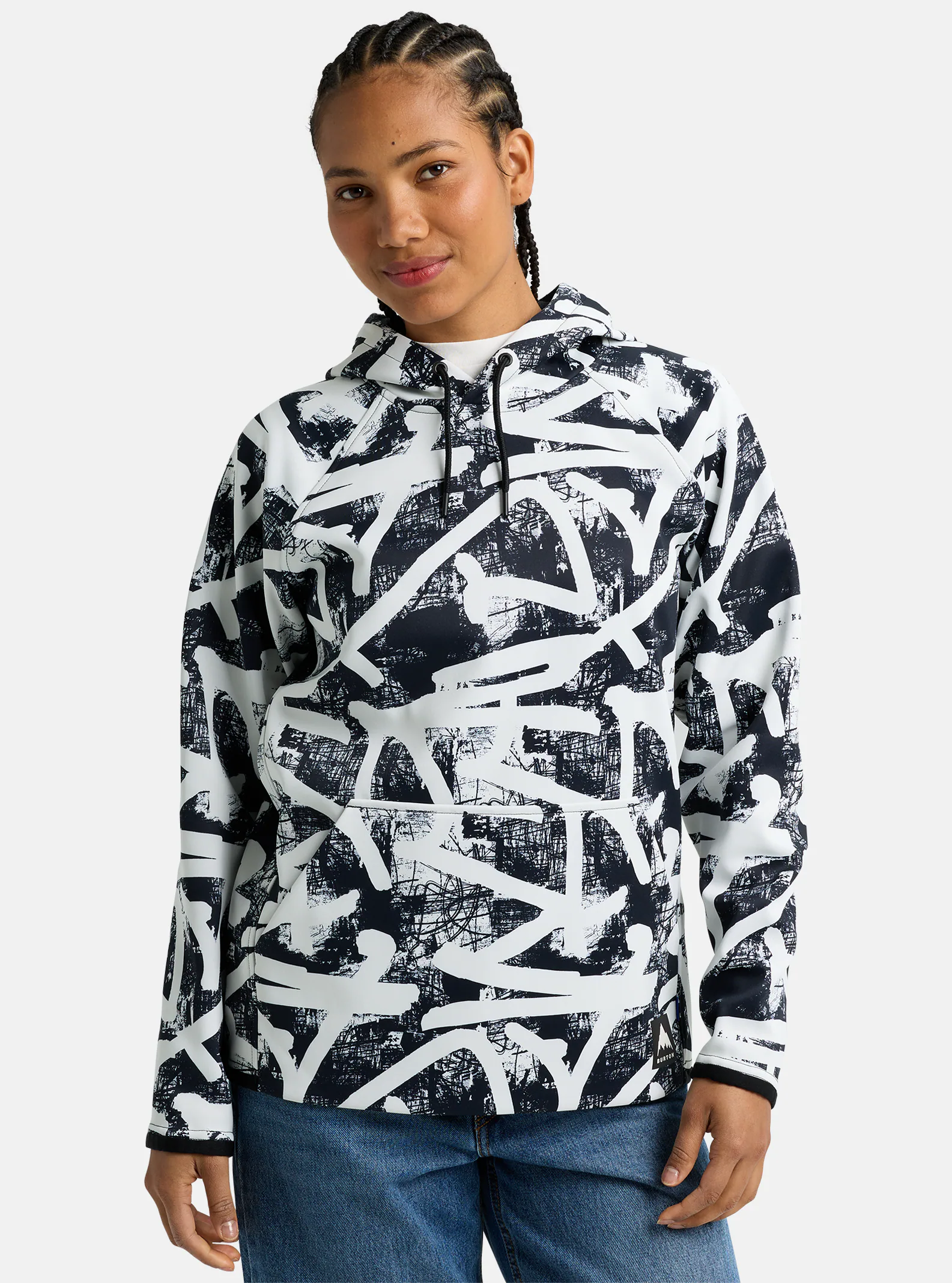 Riding all day in your cotton hoodie sounded like a good idea until you started getting wet and cold. Well, the women's Burton Crown Weatherproof Pullover Fleece Hoodie is techy enough for mountain days and laid-back enough for chilling in town. It's the answer to riding all day in a sweatshirt. Pull up the hood and consider yourself ready for just about any weather.