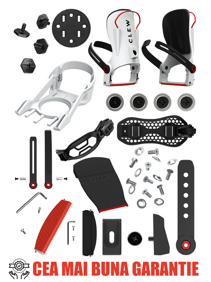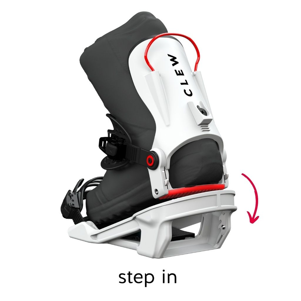 Dupa un lung proces de testare si documentare, cei din echipa CLEW au dezvoltat legaturile pentru snowboard de tipul step-in ce sunt construite cu un mecanism perfect de blocare si o compozitie optima a materialelor. Sistemul patentat functioneaza atat in zapada, cat si pe gheata. Cataramele si curelele ultra calitative realizate din TPU (Thermoplastic polyurethane) rezistent la temperaturi scazute iti ofera sentimentul legaturilor cu clichet, deja ultra testate si probate. Highback-ul se adapteaza ergonomic la picioarele tale cu o captuseala de inalta calitate realizata din EVA, sporindu-ti considerabil controlul si felul in care simti placa atunci cand te dai. Legaturile pentru snowboard de tipul step-in CLEW pot fi utilizate cu orice boots si cu orice placa si sunt compatibile cu majoritatea sistemelor actuale de prindere a legaturilor pe placa, incluzand 4x4, Channel si 3D®.