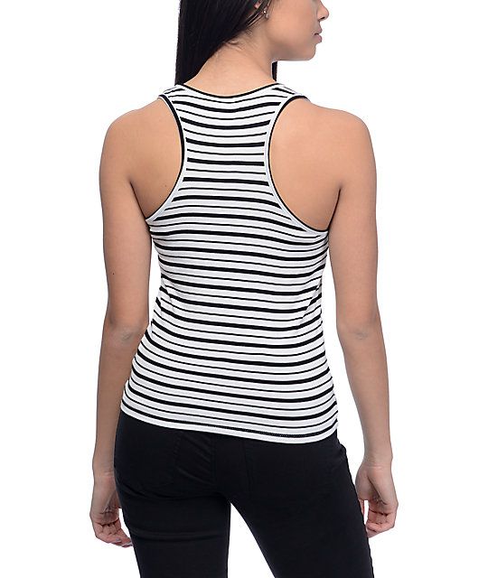 Get your summer vibes going with the Crimson tank top from Empyre. This lightweight design has a lace up closure on the front and a black and white striped pattern throughout for style.