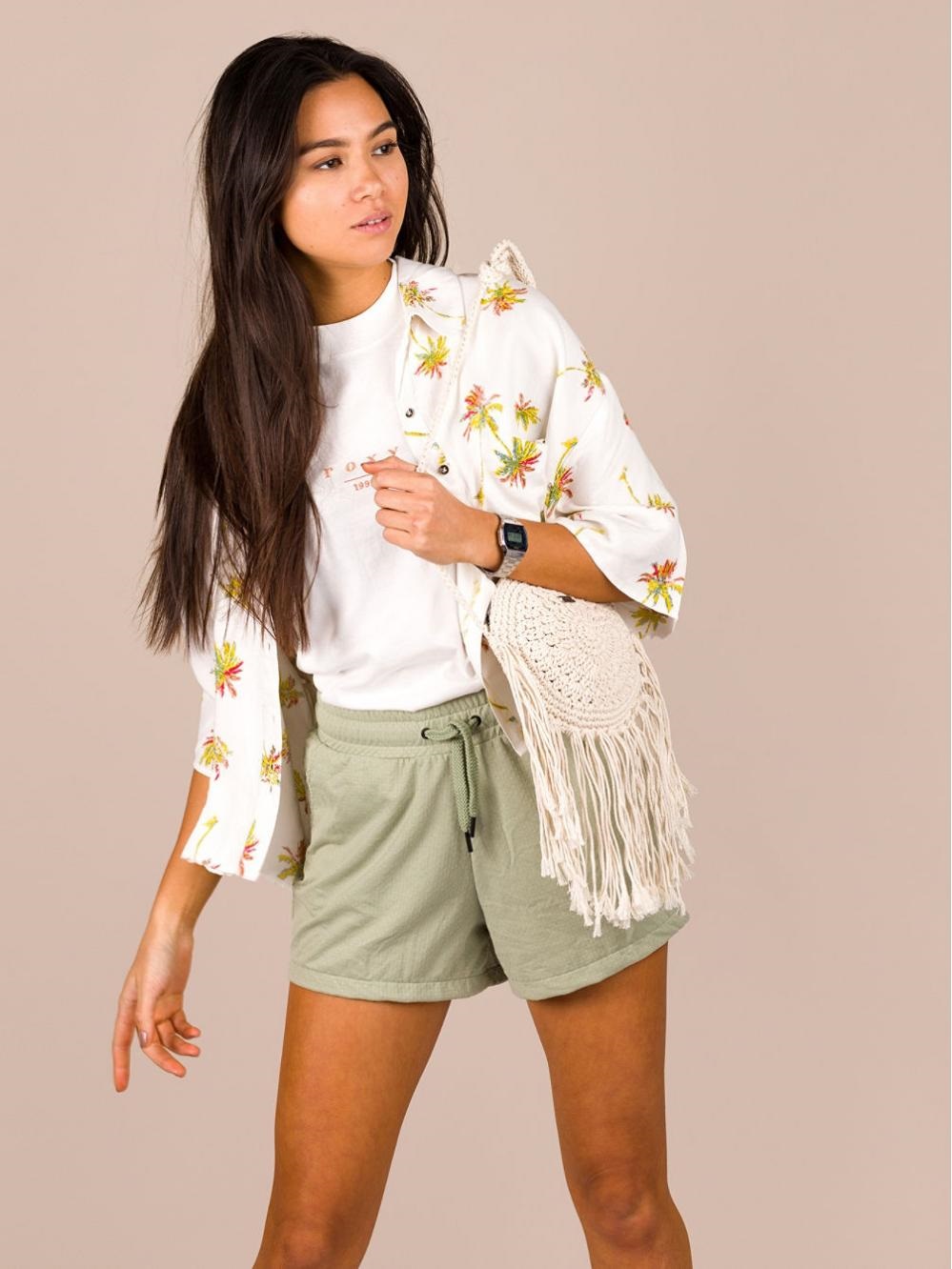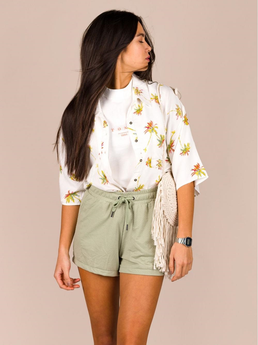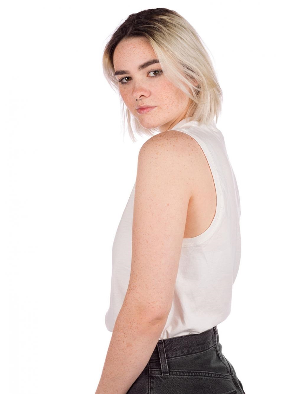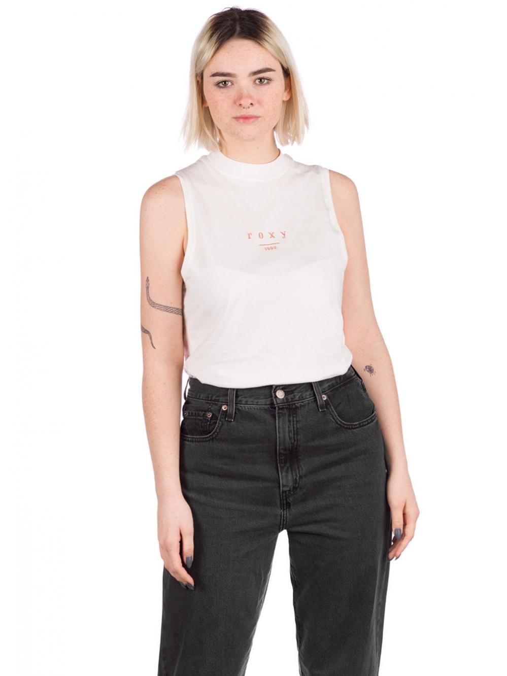 Loose Roxy tank top with logo print and high collar.