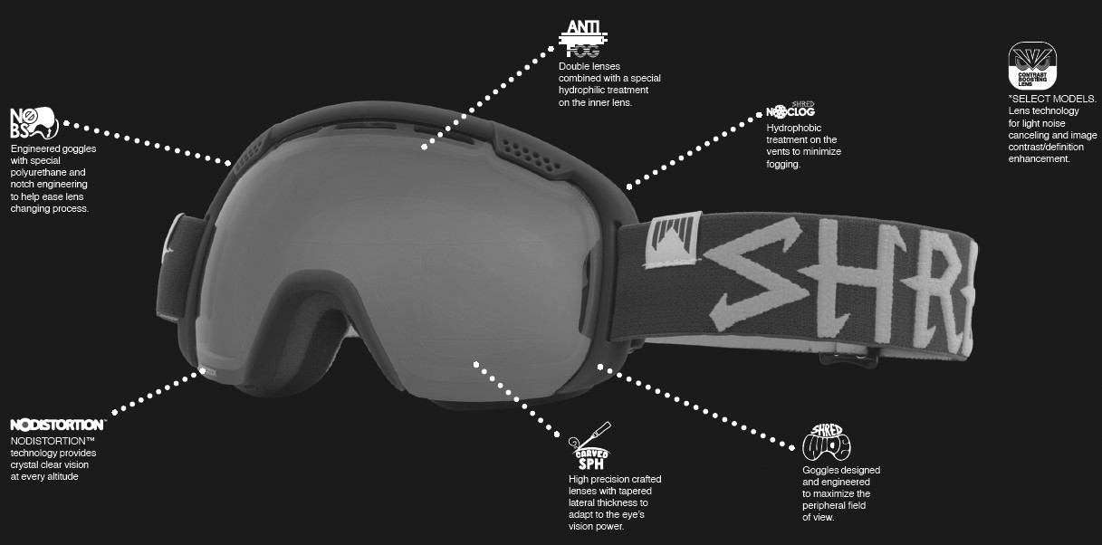 The Shred Smartefy LA TIGRE goggles are the Resi Stiegler model and are available in two versions: a lens for sunny and partly cloudy conditions or a CBL contrast lens that improves the detection depth. The shape is universal for use with most ski helmets, and the size is suitable for medium-sized faces. The lens and frame of the glasses are designed to provide the widest possible viewing width. They are made using the latest technologies and designed in style. They are equipped with NODISTORTION dual lens technology and NO BS ™ quick-change system.