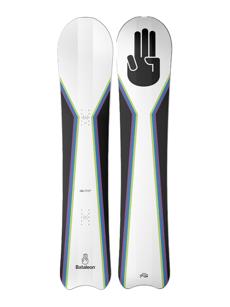 3BT™ (Triple Base Technology) with SideKick™ – All Bataleon boards feature tip to tail positive camber in combination with lifted sidebase contact points. SideKick™ Tips enhance 3BT’s advantages like nothing you experienced before by dramatically increasing the sidebase uplift at the widest points of the nose and tail. This makes turn initiation even smoother, increases float in powder and handling of the board in rough terrain.