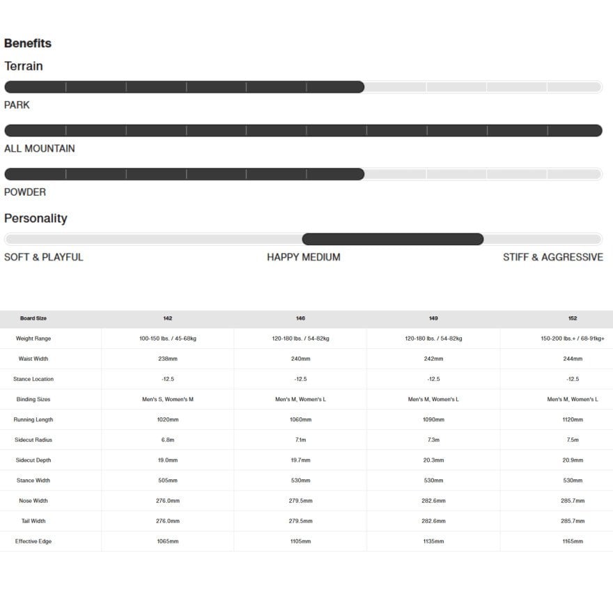 - Teren: Freestyle, All-Mountain – ideală pentru rideri care vor performanță maximă pe tot muntele, de la carving pe pârtie la sărituri și linii creative în teren variat.