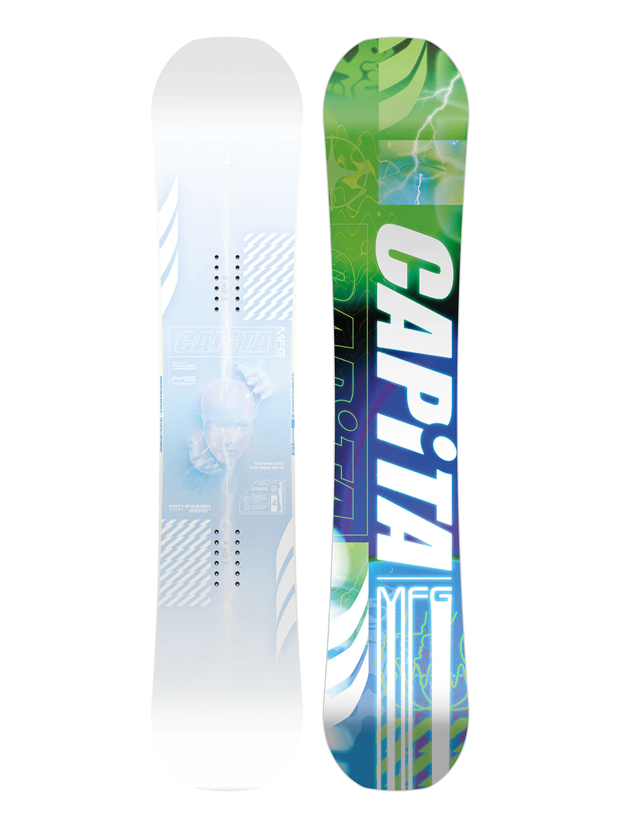 Forge your own way with the The CAPiTA Pathfinder Reverse Camber Snowboard. Illuminating the path for progressing for freestyle dreamers and resort riders who a lightweight and durable board, it has tons of trusted tech at a budget friendly price. This model features a park V2 profile with a user-friendly softer flex, taking the sting out of hardpack.. With a predictable wood core, fast base, and tough construction, this is a workhorse of a playboard for fun-focused riders and those just learning the ropes.