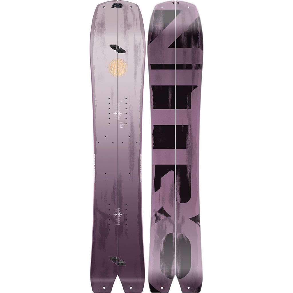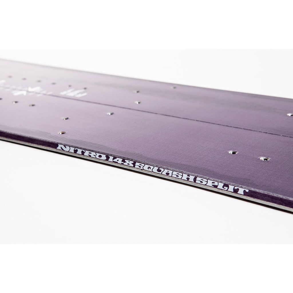 Splitboarding is an endless adventure and going up early mornings on pow days or late afternoons during a powder drought in search of fresh snow is what it is all about. The Women´s Squash Split specializes performance in all sorts of conditions by offering the perfect blend of Nitro´s Progressive Sidecut and Trüe Camber so you can lay into turns like you do it for a living. The Directional Tapered Swallowtail shape allows you to float like a boat through the deepest of pow and will allow you to enjoy the turns you worked so hard to get with effortless style. Speed will never be an issue with the Sintered Speed Formula HD Base allowing you to connect pow turns and get out of the flats with ease. Putting your skins will now be faster than ever with the pre-drilled holes in the tip and tail that fit perfectly with our custom Nitro x Kohla hiking skins, allowing you to transition between “hike and ride” mode with new precision and speed. If you are looking for a women’s specific splitboard that will offer you the ride you deserve after hiking to the summit than look no further than the Nitro women´s Squash Split!