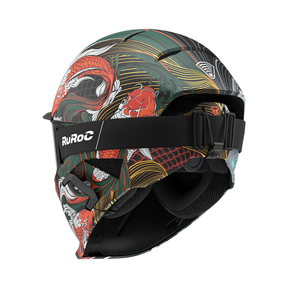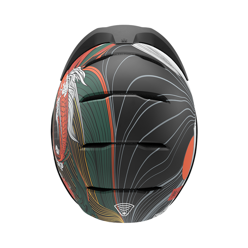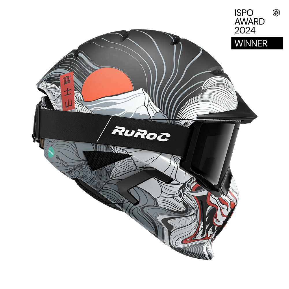 Pe o parte, se regăsește măreția liniștită a Muntelui Fuji, veșnic deasupra norilor, simbol al serenității backcountry-ului din Alpii japonezi. Pe cealaltă parte, prinde viață legenda mitică a Ultimului Koi — cel care a sfidat curentul, a ajuns la vârf și s-a transformat în dragon prin forța voinței. De la powder-ul sacru din Niseko până la culoarele abrupte din Hakuba, Fuji poartă spiritul Japoniei — o cască pe care nu doar o porți, ci o onorezi.