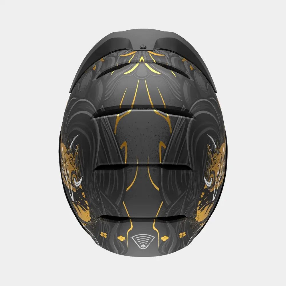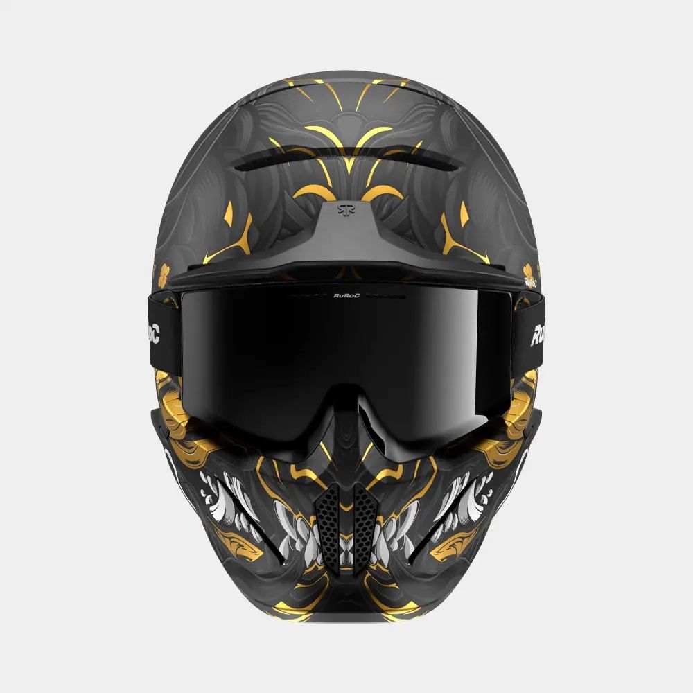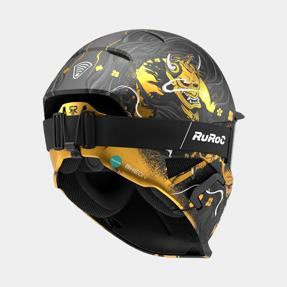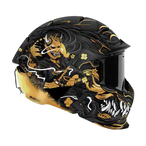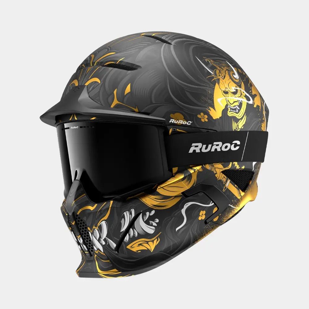 Dezlănțuie-ți războinicul interior cu RG2 Oni. Cu o ilustrație grafică a unui războinic samurai, acest design este finisat cu dungi aurii uimitoare, adăugând o aură de forță și onoare finisajului. Prezența artistică a lui RG2 Oni este completată cu dinți rânjiți pe mască.