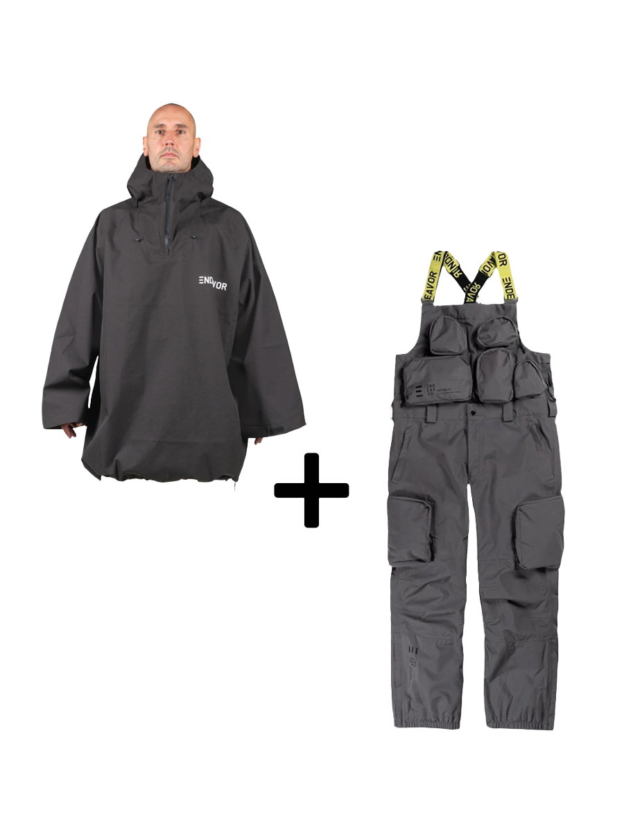SET Hanorac SKI SNOWBOARD 20.000mm Endeavor 3L Scout Poncho BLACK x Salopeta Snowboard ENDEAVOR - 3L Scout 20K Removable Black