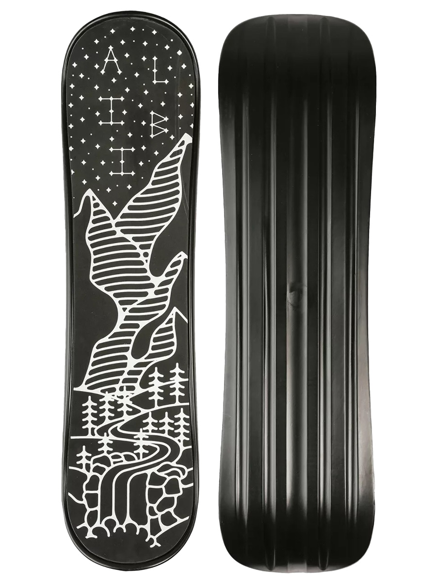 The Alibi Constant Elation Snowskate offers you pure joy for days in your own backyard. To help you conjure up your tricks in the snow, this model comes with grooved channels on the bottom and steep kicktails for extra pop.