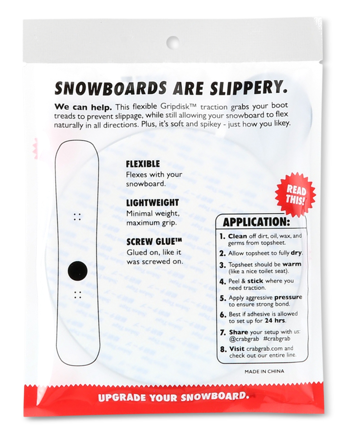 Incredibilul Grip Disk™ nu ii permite boot-ului tau sa alunece, in timp ce nu restrictioneaza flexibilitatea placii tale. In plus, este moale si ascutit - exact cum iti place tie!