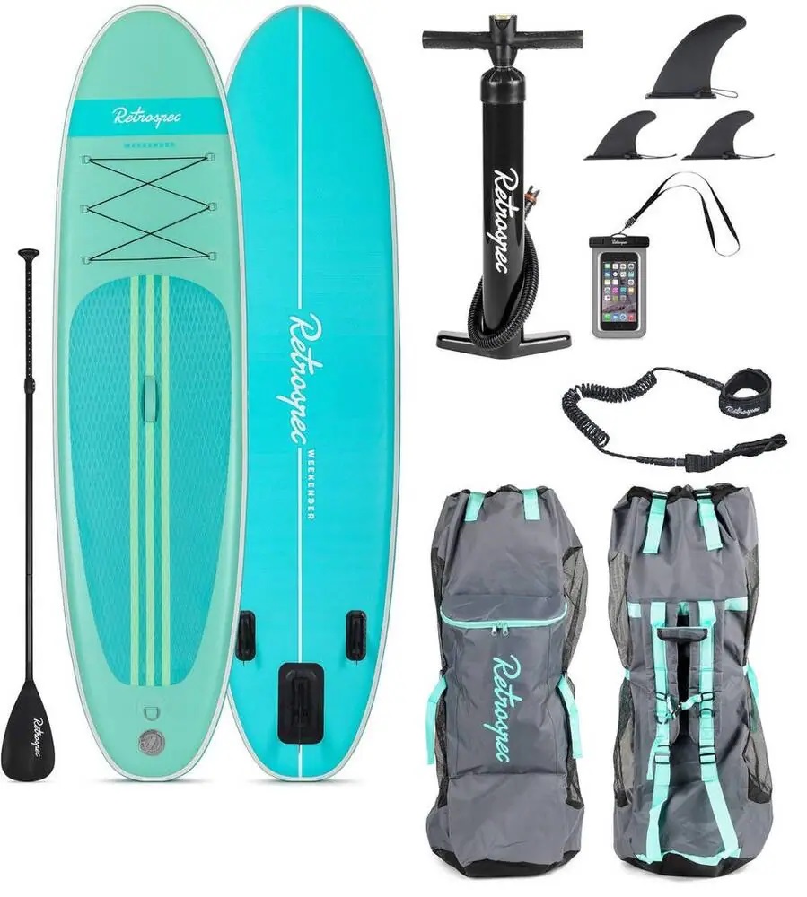 Weekender 10' de la Retrospec este un pachet complet de stand-up paddleboard cu tot ceea ce aveți nevoie pentru a ieși pe apă și a rămâne acolo ore întregi.