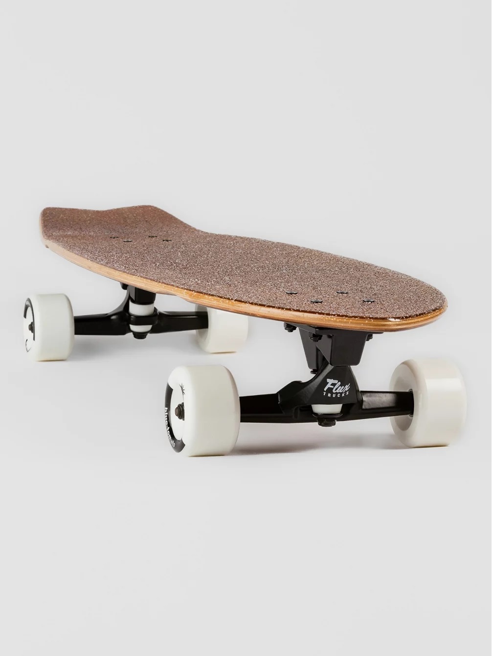 The manoeuvrable Flux trucks allow extremely tight turns. This allows you to pump up and down the road without pushing. An ingenious skateboard for those who also want to practice their surf turns on flat days.