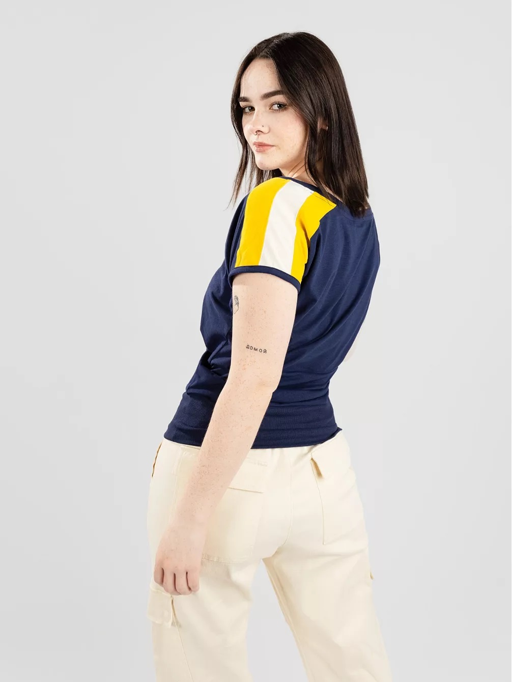 The stripes in contrasting colours on the shoulders give this T-shirt a casual style.